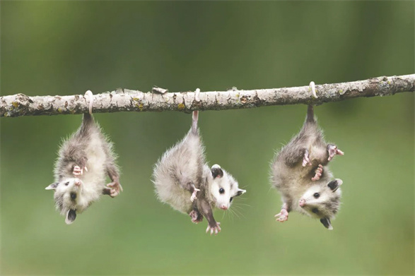 负鼠不是鼠,它们是袋鼠的亲戚,可以长到家猫那么大。负鼠宝宝会在妈妈的育儿袋里生活一段时间,然后爬出来,趴在妈妈的背上。