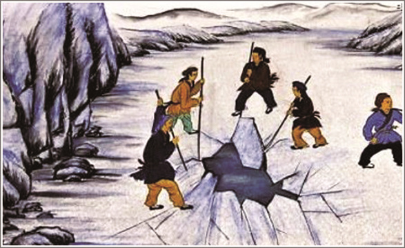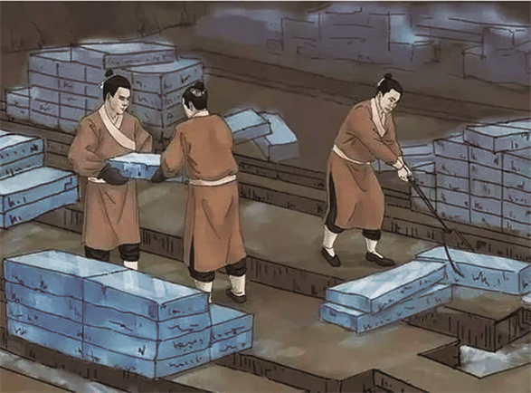 每年大寒季节,官吏带领下属到冰冻河上凿采,再将冰块运送到冰窖里,用新鲜稻草和芦席做铺垫,将冰放铺垫上后,覆盖稻糠、树叶等隔温材料,密封窖口,待来年享用。
