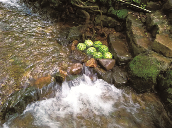 直到今天,在一些水质清澈的溪流里,人们依旧喜欢将啤酒、饮料、西瓜等消暑食物放进清冽的水中进行“冰镇”。咬一口,应该都是大自然的味道吧。