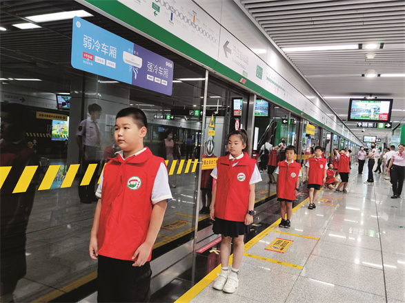 8月2日,合肥市六安路小学中铁国际城校区三(10)中队走进合肥市地铁3号线杏花村站,开展“与志愿者同行”的红领巾实践主题活动。
