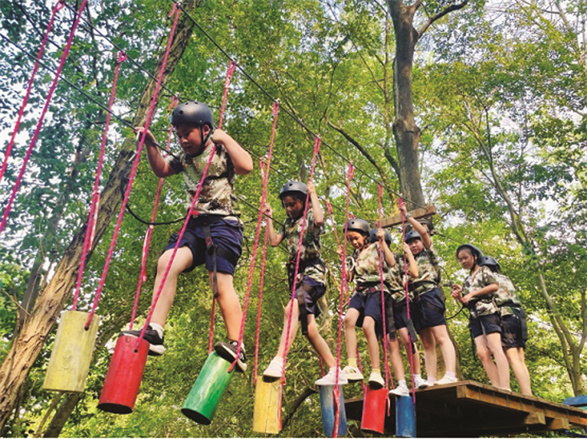 此次夏令营活动内容丰富,包括军姿列队训练、内务整理训练、体能训练、火箭炮等轻兵器使用体验,除此以外,还设置了丛林穿越、野外真人CS对抗等户外拓展项目。每次完成训练后同学们都小脸通红,汗流浃背,但同学们从不叫苦、叫累,还纷纷表示暑期体验真是太有意义了。