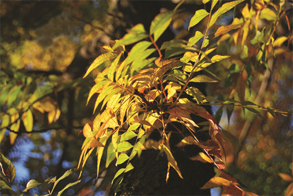 秋色叶树种。落叶乔木,偶数羽状复叶互生,小叶5~7对,披针形或卵状披针形,秋季叶片可变为橙黄或鲜红色,同时核果成熟呈紫红色或橙黄色,能一直保持到深秋;宜作庭荫树及山地风景树种。