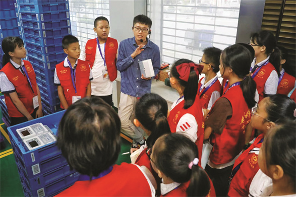 最后,学生记者走进生产车间,一台智能化机器人引人注目,“请问这个机器人叫什么名字?”“请问它是怎么工作的呢?”面对学生记者们的问题,徐杰叔叔给予耐心解答。听完解答,学生记者感慨道:“机器代替了人工,这真让我大开眼界。”