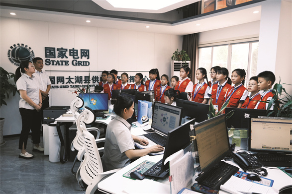 活动最后一站,学生记者走进国网安徽省电力有限公司太湖县供电公司,工作人员为学生记者播放了中国电力发展史的视频。震撼的宣传片,让学生记者对默默奋斗在一线的电力工作者产生崇高的敬意。“电由百年前的‘奢侈品’成为日常的‘必需品’,少不了电力人背后默默的努力,他们点亮了所有人的希望,我以他们为荣!”有学生记者说。