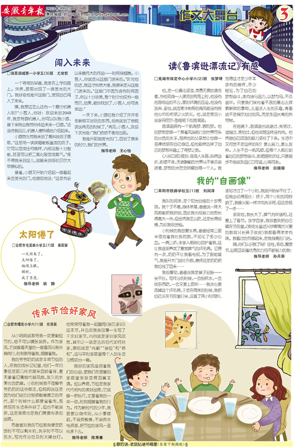 《安徽青年报·学生周刊》励志启智,开阔视野,净化心灵,陶冶情操,参与互动,集新闻性、知识性、趣味性、互动性为一体,是小学生成长的良师益友、参与互动的平台、沟通老师家长的纽带。