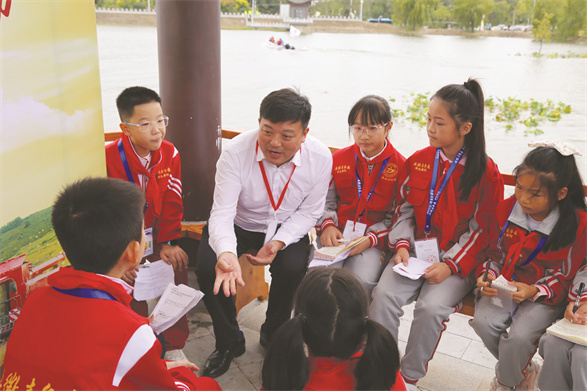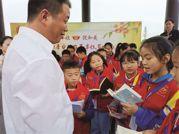 “同学们,你们知道‘袁定大米’吗?……”郑培进娓娓道来,向学生记者讲述了定远县在农业方面的优势和成就,并寄语小学生多参加社会实践、劳动教育等活动,去感受农村环境,了解农村发展。