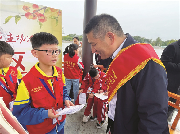 “叔叔,请问本次滁州市主场活动为什么要选在定远举办呢?”“伯伯,您认为了解农业发展、乡村振兴对我们小学生而言有什么意义?”学生记者先后采访了定远县网信中心主任郑培进和定远县委教体工委书记、教体局局长张传志。稚嫩的声音里,蕴含着对家乡农业发展的关心。