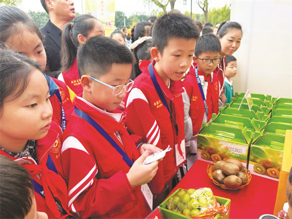 炉桥桥尾、梅白鱼锅巴、池河糕、阳光玫瑰葡萄……走进金山溪谷,“定有良材”农产品展销区的各色农产品赚足了学生记者的眼球。“叔叔,今年你们的葡萄产量怎么样?”“阿姨,您是第几次参加这样的展销?”学生记者抑制不住内心的好奇问道,“我们是第一次参加这样的展销活动,今天我们的产品大受欢迎,小朋友们快来尝一尝……”现场的商户们不仅热心解答学生记者的提问,还请大家品尝各色美食产品。