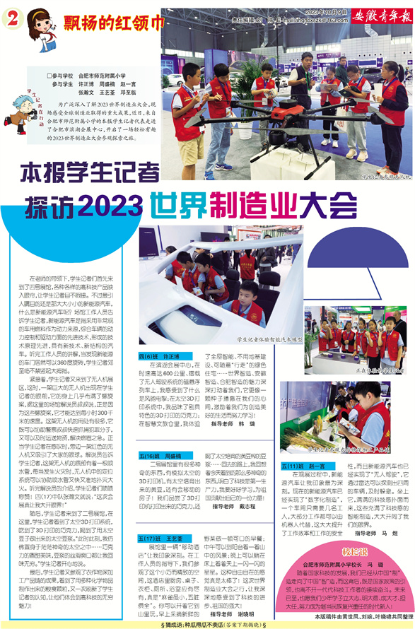 为广泛深入了解2023世界制造业大会,现场感受全球制造业取得的重大成果,近日,来自合肥市师范附属小学的本报学生记者代表走进了合肥市滨湖会展中心,开启了一场轻松有趣的2023世界制造业大会参观探索之旅。