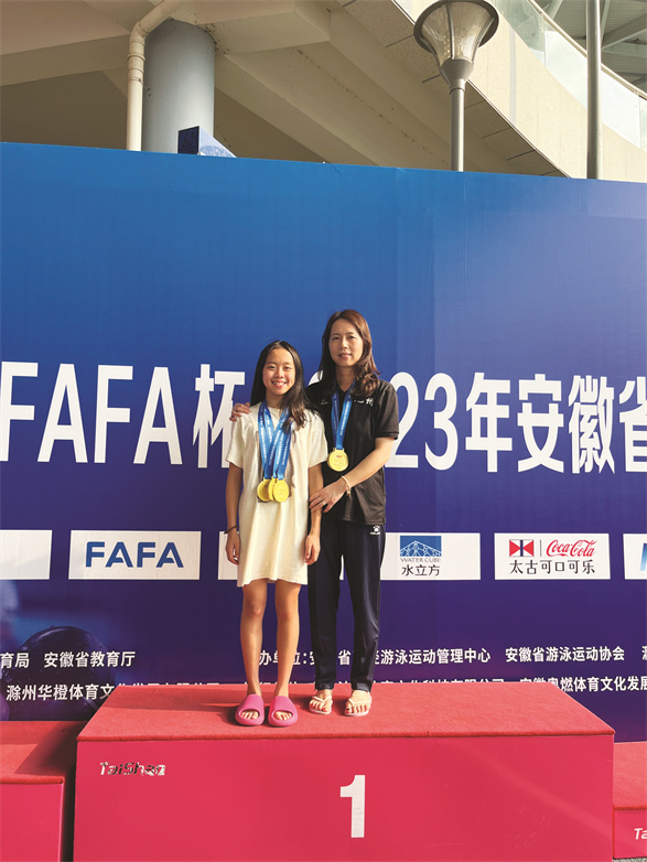 一分耕耘,一分收获,这实实在在体现在我的身上。两年来,我从一个游泳小白,到现在掌握了四种泳姿。在2022年安徽省青少年游泳锦标赛中,我获得了U11组100米自由泳第四名和U11组400米自由泳第九名,两项成绩均达到国家二级运动员水平;在2022年安徽省青少年游泳冠军赛中,我取得U11组50米蝶泳第二名;在2023年安徽省游泳俱乐部联赛中,我获得11岁组50米自由泳第一名和11岁组50米蝶泳第一名;在2023年安徽省青少年游泳锦标赛中,我分别获得11岁组50米自由泳第一名、11岁组200米混合泳第一名、11岁组100米自由泳第一名、11岁组200米自由泳第一名、11岁组100米蝶泳第一名,一共摘得五枚金牌!