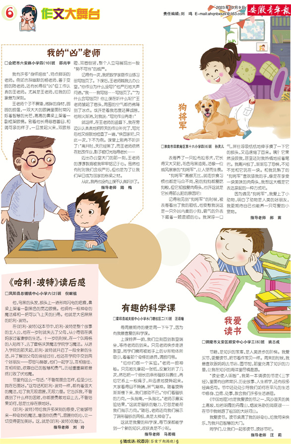 《安徽青年报·学生周刊》励志启智,开阔视野,净化心灵,陶冶情操,参与互动,集新闻性、知识性、趣味性、互动性为一体,是小学生成长的良师益友、参与互动的平台、沟通老师家长的纽带。