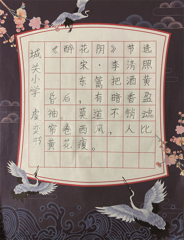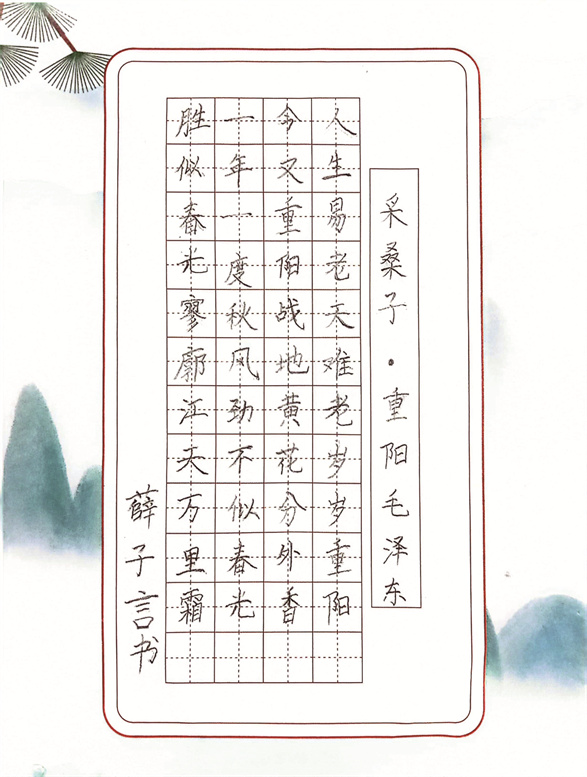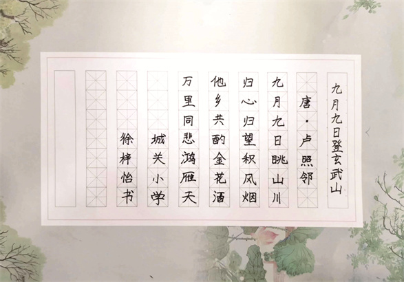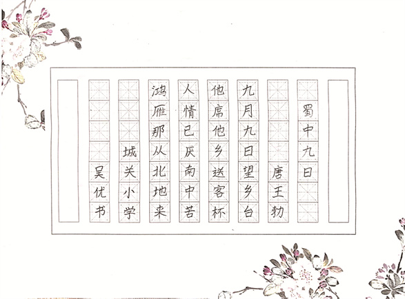 神奇画笔 重阳节写“重阳” 重阳节又称“敬老节”,认识重阳节是对中国孝文化的一大传承,登高望远,遍插茱萸,重阳宴饮,蕴含了感恩祈福之意。10月23日是重阳节,在这一特殊的节日里,池州市贵池区城关小学二(10)班的同学们,通过书法作品,来展现传统文化的魅力,并表达对长者的敬爱之情。