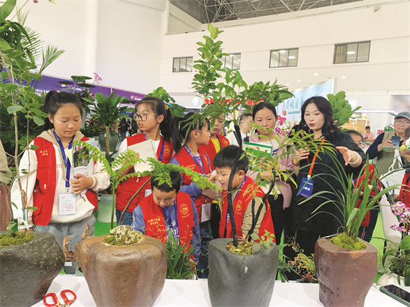 10月20日,2023中国·合肥苗木花卉交易大会在中国中部花木城(肥西)盛大开幕。为充分了解花卉的相关知识,培养少年儿童践行“绿色发展”理念,当天下午,来自本报的13名学生记者走进苗交会现场,近距离观赏美丽的植物和花卉,通过聆听工作人员的解说,在实践中了解花卉相关知识。同时,采访了相关展位负责人,在对话中进一步了解花卉种植的技巧,培养种花护花的兴趣爱好。
