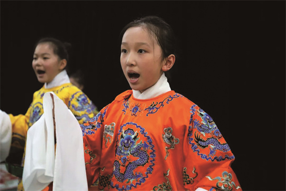 跨过了一个又一个关卡,我学戏的劲头越来越足,进步也越来越大。在老师的精心指导下,我很快学会了《打龙袍》《岳母刺字》《对花枪》《沙家浜》和《杨门女将》等几出经典老旦戏的演唱,不仅成为少儿剧团和学校的“京剧小童星”,还出演了中央电视台戏曲频道《宝贝亮相吧》节目,在全国戏迷观众前一展风采。