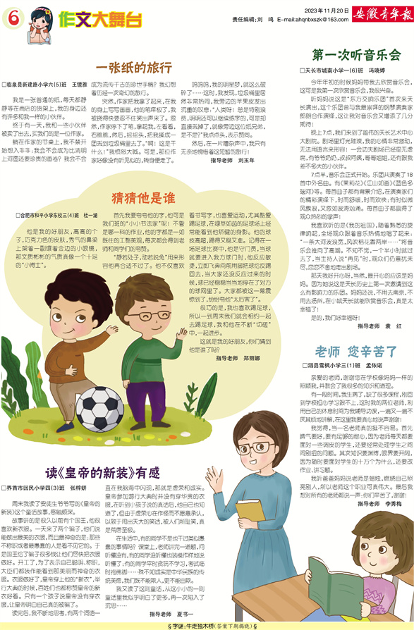 《安徽青年报·学生周刊》励志启智,开阔视野,净化心灵,陶冶情操,参与互动,集新闻性、知识性、趣味性、互动性为一体,是小学生成长的良师益友、参与互动的平台、沟通老师家长的纽带。