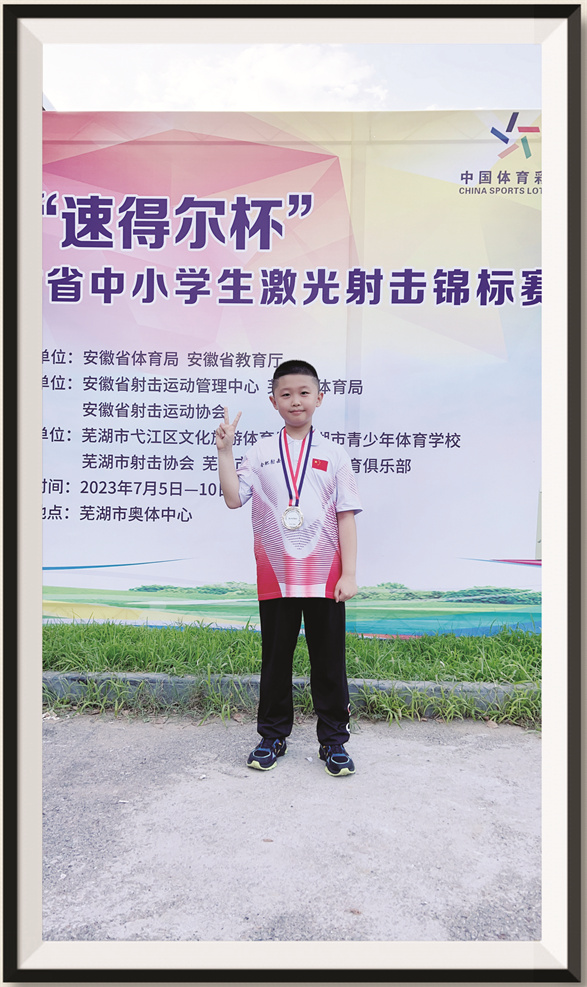 在经历平时的训练以及大赛的磨炼之后,我锻炼了稳重的心态,遇事冷静思考,也懂得了坚持。凭借这份坚持与热爱,我取得了不少荣誉。曾获得包河区中小学“阳光体育运动”激光枪射击比赛小学乙组手枪个人及团体第一名,2023年合肥市中小学“阳光体育运动”激光枪射击比赛小学乙组手枪个人及团体第一名,2023年安徽省中小学生激光射击锦标赛团体第二名,2023年全国体育运动学校联合会青少年激光射击巡回赛·青岛站男子丙组10米激光手枪有依托项目冠军,2023年中国中小学生射击联赛男子10米光电手枪一等奖,等等。