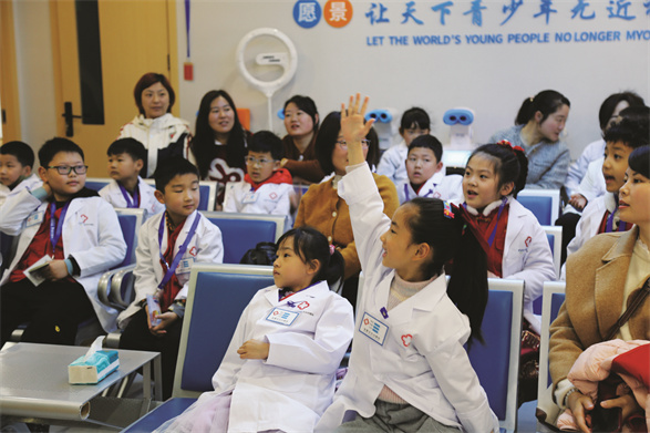 “看绿色的东西对眼睛其实起不到什么保护作用,真正对眼睛有好处的做法是眺望远方。所以我们平时写作业写得久了,也可以眺望远处几分钟,缓解眼睛疲劳。”“高度近视可能会导致视网膜脱落、青光眼、黄斑病变等,严重的甚至可能导致失明……”经过上一个环节的认真倾听,学生们回答起这些问题简直再轻松不过,这些爱眼护眼的小知识已经深深铭刻在他们心里。