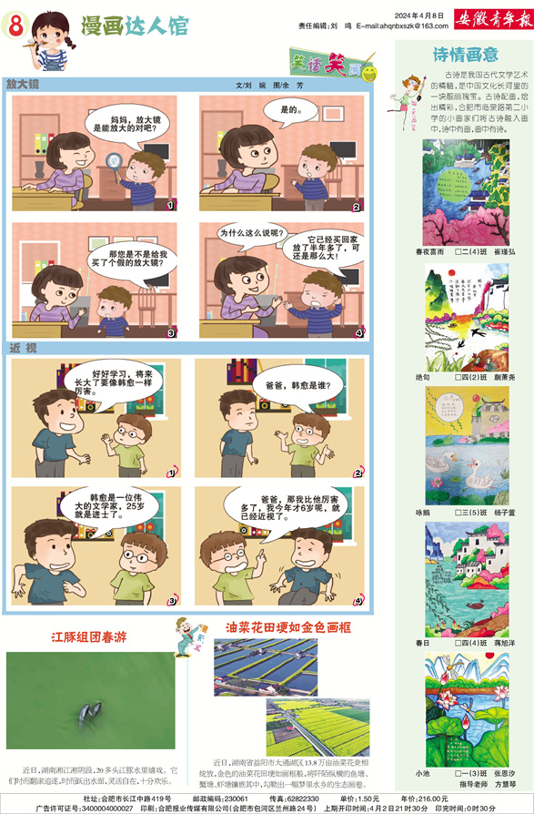 《安徽青年报·学生周刊》励志启智,开阔视野,净化心灵,陶冶情操,参与互动,集新闻性、知识性、趣味性、互动性为一体,是小学生成长的良师益友、参与互动的平台、沟通老师家长的纽带。