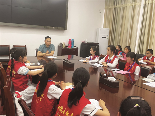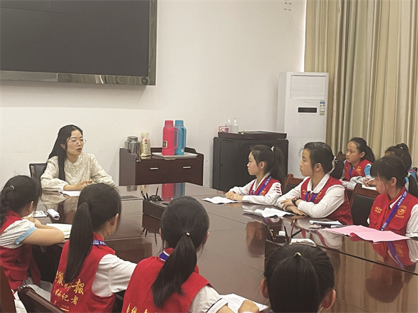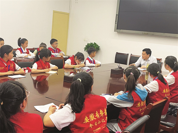 “叔叔,怎样才能更了解我们的家乡呢?”“阿姨,了解乡村振兴对我们小学生而言有什么意义?”之后,学生记者采访了团县委书记高亚东和县教育团工委书记汪敏。高亚东为大家详细讲述了为增强学生的爱党、爱国情怀所做的工作,并寄语小学生多参加实践活动,塑造良好品格,实现全面发展。汪敏也希望大家好好学习,在学习时善于思考,勤于总结,心系家乡,长大为家乡发展助力。活动让学生记者收获满满,韦家怡说:“今后学习,我们要以舒城人民为榜样,不怕苦不怕累。”周歆怡也说:“我们是祖国的未来,我要坚定地接过建设祖国的‘接力棒’!”