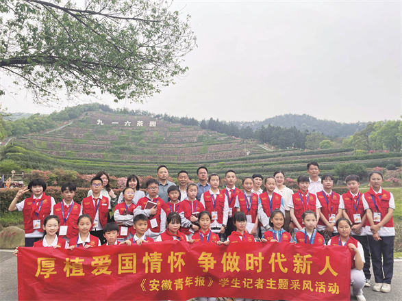 为追寻伟人足迹,学习先辈精神,树立远大理想,近日,本报25名学生记者走进毛主席视察舒茶纪念馆,追寻伟人足迹,领略茶园风光,并对话舒城县人民政府副县长胡久松,共青团舒城县委书记高亚东,舒茶镇党委书记高瑞稳,舒城县教育团工委书记汪敏等叔叔阿姨,聆听舒城发展故事,接受深刻的爱国主义教育洗礼。