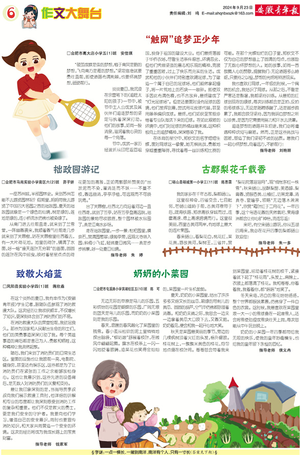 《安徽青年报·学生周刊》励志启智,开阔视野,净化心灵,陶冶情操,参与互动,集新闻性、知识性、趣味性、互动性为一体,是小学生成长的良师益友、参与互动的平台、沟通老师家长的纽带。
