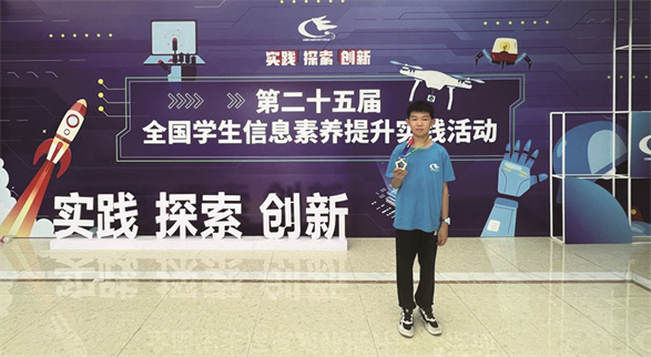 2024年7月22日~7月28日,第二十五届全国学生信息素养提升实践活动在浙江诸暨隆重举行。刘海龙作为安徽省“智能机器人B类”小学组项目代表(全省仅1所小学入选)参加了全国现场交流活动,通过一周时间的角逐,他勇夺智能机器人B类项目国家级最高奖“创新之星”!