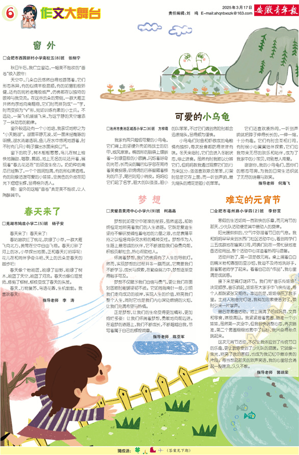《安徽青年报·学生周刊》励志启智,开阔视野,净化心灵,陶冶情操,参与互动,集新闻性、知识性、趣味性、互动性为一体,是小学生成长的良师益友、参与互动的平台、沟通老师家长的纽带。
