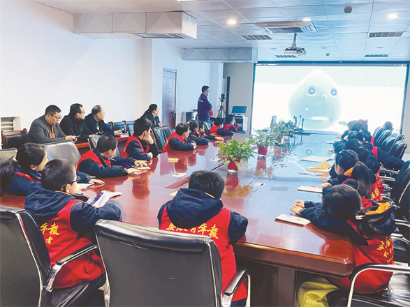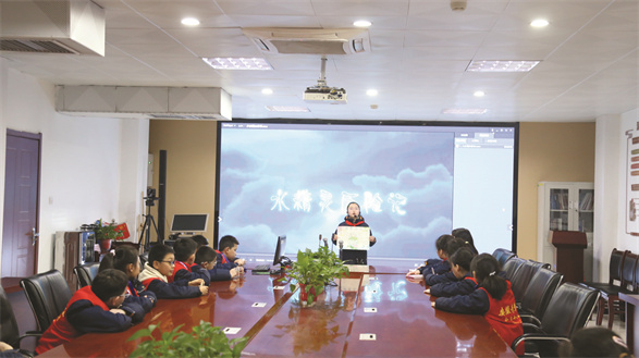 “下雨了,小水滴出发了”“下水道可是城市的良心”“水中还有卫生纸,小朋友们要做到日常垃圾分类”……学生记者一行来到了会议室,观看了环保科普动漫知识宣传片《小水滴历险记》,宣传片生动直观地介绍了“脏水滴”是如何通过污水处理厂的处理变成再生水的水源,有趣又形象的动漫故事让学生记者们看得十分投入。