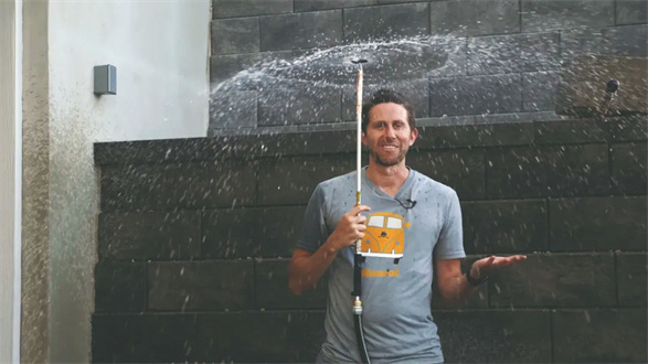发明家用空气伞的概念设计了一把“水伞”,其主体是一根水管,水会从最上方360度喷出,形成一片水幕作为伞面。研发人员的设想是用水伞喷出的水偏转雨水,使站在水幕下的人不被雨淋。