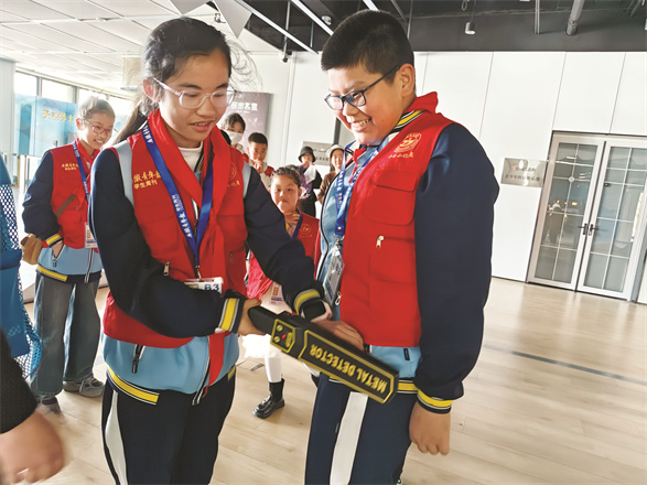 “为什么要进行安检呢”“充电宝能托运吗”“宠物龟可以随身携带吗”……随后,在安检知识课堂上,科普馆老师为学生记者们播放航空安检专题宣传片,揭开航空安检的神秘面纱。镜头从行李X光扫描机跳转到安检员实操现场,学生记者们紧盯屏幕,看着行李箱内“透视”出的一个个违禁物品被贴上“禁止登机”的标签,急忙记下航空安全知识要点。