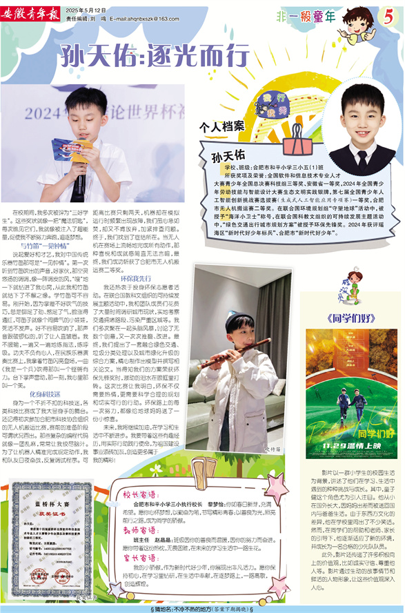 《安徽青年报·学生周刊》励志启智,开阔视野,净化心灵,陶冶情操,参与互动,集新闻性、知识性、趣味性、互动性为一体,是小学生成长的良师益友、参与互动的平台、沟通老师家长的纽带。