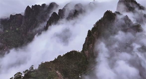 漫新闻 雨后黄山水墨画 近日,安徽黄山风景区雨后出现壮美云海景观,云雾缭绕、翻腾涌动,宛如一幅立体的水墨画卷。
