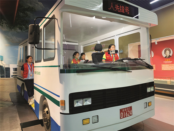 移步至公交车模型体验区,学生记者朱祎诺轻轻推开复古造型的车门,驾驶座前的仪表盘泛着微光。她模仿着记忆中公交司机的模样,踩下虚拟油门,随着车辆缓缓启动,显示屏上的城市街景随之移动。朱祎诺望着显示屏里复杂的街道以及突然从拐角处冲出的“行人”,她喃喃道:“原来公交车的每一趟平安抵达,都是司机师傅全神贯注的结果。”
