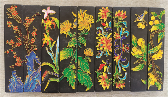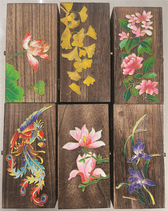 不过,创作之路并非一帆风顺。刚开始,很多队员觉得掐丝好难,铜丝总不听话,填砂时颜色串色、高低不平。但大家没放弃,在老师的耐心指导下慢慢掌握技巧。有一次,社团的同学在制作一幅“凤凰”图案时,铜丝总是弯不整齐,他试了好多次都没有成功。后来,老师教他用小镊子一点点地调整,终于完成了作品。队员开心地说:“原来只要耐心一点,就能做出漂亮的作品!”