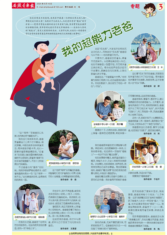 你是否曾在不经意间,发现家中藏着一位神秘而伟大的人物?那便是我们的父亲!他绝非平凡的大人,而是身怀奇妙“魔法”的守护者——宽厚手掌能让损坏的自行车重新飞驰,坚实臂弯能在噩梦时分驱散恐惧,简单食材也能化作舌尖幸福滋味……这些令人惊叹的“超能力”,皆是父爱情深的见证。父亲节之际,让我们一同看看同学们分享的老爸有着怎样的独特技能和他们之间的暖心故事吧!