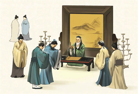 清朝中榜学子在朝谢之后,还要在状元的率领下,前往国子监拜谒祭酒(相当于现在的校长)、司业(相当于现在的副校长)。他们分别给状元、榜眼、探花进酒并簪金花,其余中榜学子则由“校长”的属官进酒并簪红花。这一“簪花”仪式,与现代学位授予时的“拨穗”仪式颇为相似。