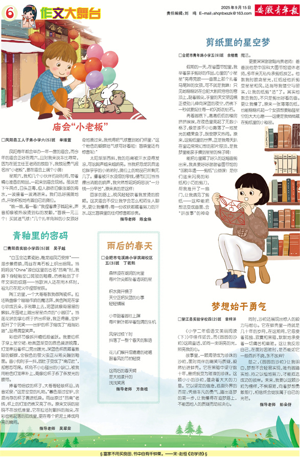 庙会“小老板” 青釉里的密码 雨后的春天 剪纸里的星空梦 梦想始于勇气