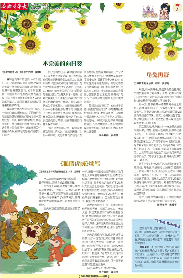 《安徽青年报·学生周刊》励志启智,开阔视野,净化心灵,陶冶情操,参与互动,集新闻性、知识性、趣味性、互动性为一体,是小学生成长的良师益友、参与互动的平台、沟通老师家长的纽带。