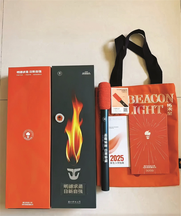 新生礼盒中的“神秘黑盒子”下方区域可以点燃,点燃后会出现“明德求是,日新自强”的校训,并且在手机支持下,能呈现出熊熊燃烧的AR效果 。