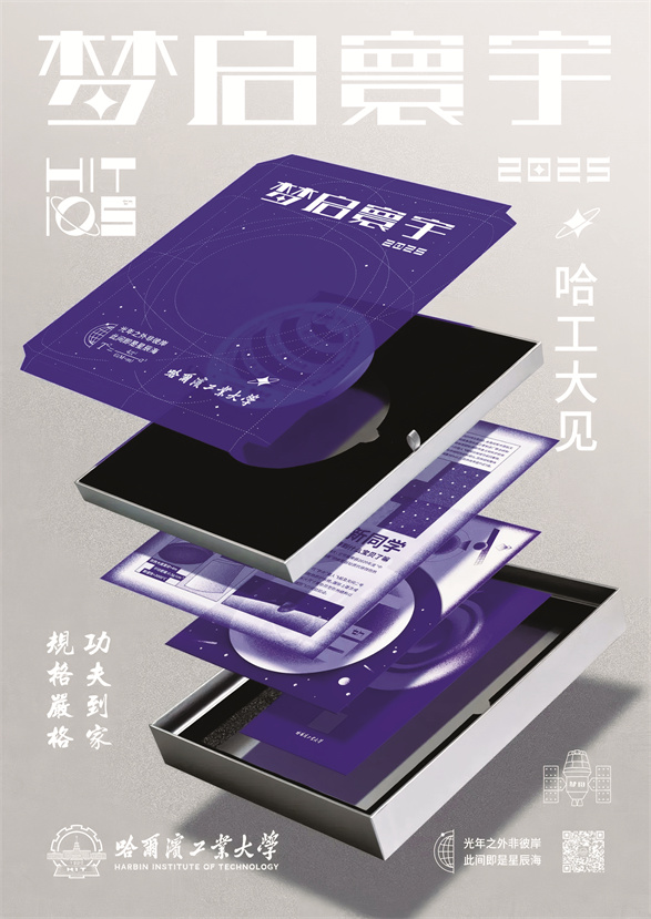 哈工大为2025级本科新生准备的“梦想”礼以“梦启寰宇”为主题,围绕“宇宙、梦想、小卫星”进行设计。打开录取通知书,映入眼帘的是镌刻校长寄语的圆片,由“梦舟”飞船、天问二号探测器返回舱核心热防护同款材料精心制作而成。录取通知书中还特别放置了“哈工大小卫星梦想遨游计划”邀请函,新生通过手机扫码登录可以输入未来的梦想。