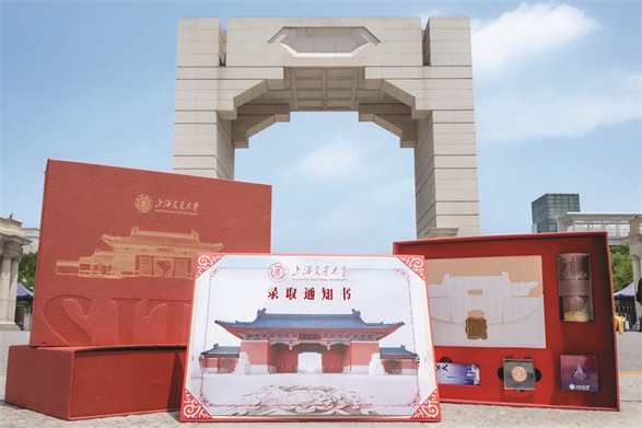 这是一份特别的录取通知书,潞绸封上复旦建校120周年标识创新演绎传统“龙凤戏珠”图案,烫金的复旦百廿logo印在封底,新生们拿到的每一份都是建校120周年的限定款。