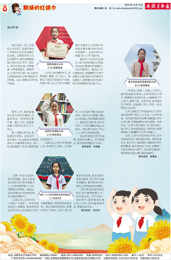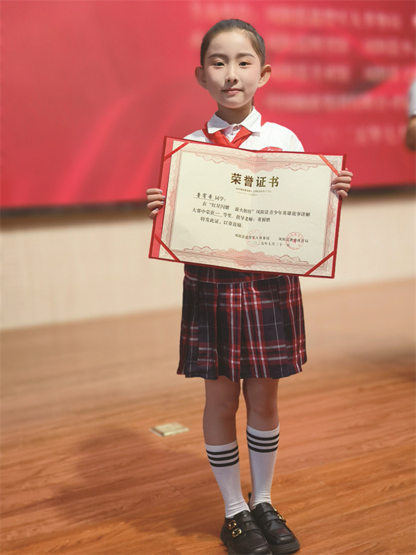 暑假在方邱湖社区宣讲,我讲到凤阳籍抗日英雄刘利民的事迹时声音颤抖,泪水夺眶而出。看到台下听众被感动时,我更懂得了红领巾的意义与宣讲使命,作为新时代的接班人,我要通过自己的努力把红色故事更好地传递下去。