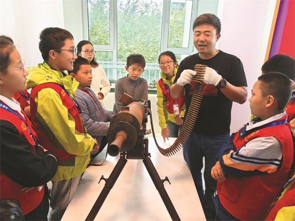 “东风系列导弹宛如苍穹卫士,守得住家国万里安,依靠精确的制导系统,精准打击目标,‘东风快递,使命必达’!”馆长生动的比喻引来同学们阵阵惊叹。他还特别结合今年九三阅兵仪式与九一八防空演练的现实意义,阐述了强大国防对于维护国家主权、安全和发展利益的重要性,引导大家铭记历史、居安思危。