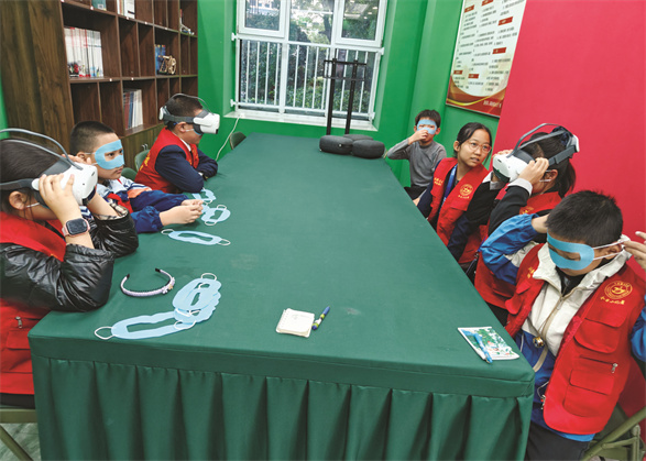 虚拟现实体验区域则运用先进的VR技术,同学们戴上VR设备,瞬间“穿越”到各类训练以及战争的场景,360度全景视角让同学们身临其境地感受到我国军事科技发展的“惊艳蝶变”。