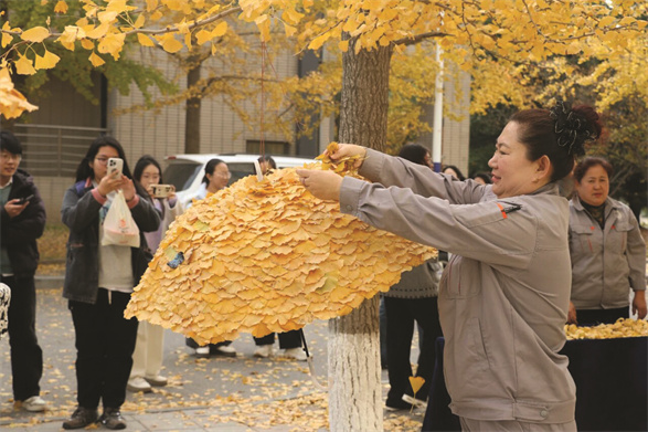 最近,大连外国语大学的保洁阿姨们变身为“落叶艺术家”!她们拿着扫帚当画笔,用金黄的银杏叶拼出小兔子、爱心、花朵等创意图案。这些“落叶画”和校园的建筑手拉手,美得像童话世界。路过的老师和学生们都忍不住停下脚步,举着手机咔嚓咔嚓拍个不停,连空气里都飘着开心的味道!