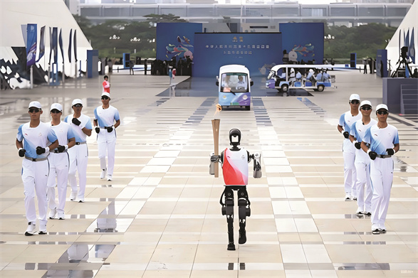 十五运会火炬传递开创了“三地联动、四城同传”的全新模式。而最引人注目的亮点无疑是深圳站出现的这位特殊火炬手——人形机器人“夸父”。