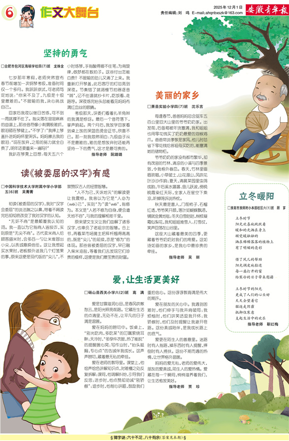 《安徽青年报·学生周刊》励志启智,开阔视野,净化心灵,陶冶情操,参与互动,集新闻性、知识性、趣味性、互动性为一体,是小学生成长的良师益友、参与互动的平台、沟通老师家长的纽带。
