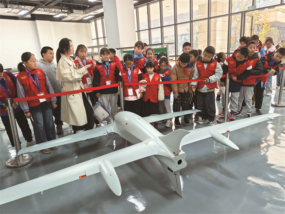 在空天技术创新中心,各类无人机与卫星导航设备吸引了大家的目光。工作人员讲解了卫星的大致构造与工作原理,生动阐释了通信、导航等卫星系统的功能以及不同形态的无人机在物流、农业、救援等领域具有广泛应用。