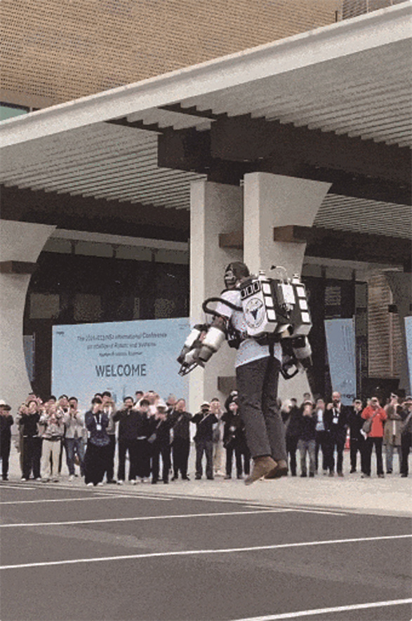 近日,在浙江大学开放日上,一款由浙大湖州研究院JetRob团队研发的喷气式飞行背包吸引众多同学围观。这款背包重31公斤,五台发动机供能,时速可达100公里,能飞3~5分钟,已用于应急救援等场景。试飞工程师焦博静背着背包,离地两米悬停、转向飞行再平稳落地,一气呵成。中专毕业的焦博静,从设备维修员逆袭成工程师,研发三四年终获成功,他自信地表示:“机器人飞行未来定会超越!”
